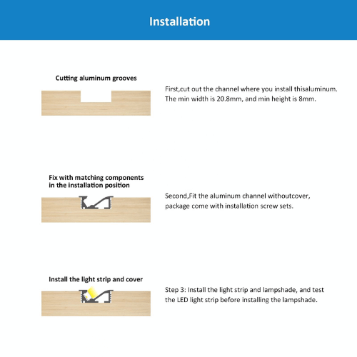 The TAITA Backlight Aluminum LED Profile is also highly versatile. It can be easily cut to custom lengths and supports multiple installation methods including open, concealed, or suspended mounting. This flexibility allows seamless integration into any interior design concept. Compatible with a wide range of LED strip lights (not included), it provides complete freedom to achieve the brightness and ambiance you desire.