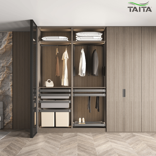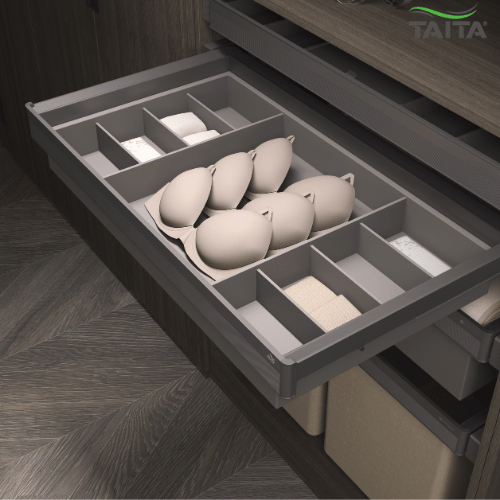 The TAITA Wardrobe Pull Out Leather Underwear Storage Shelf combines minimalist design, functionality, and durability, making it the ideal solution for modern wardrobe organization with a touch of refined style.