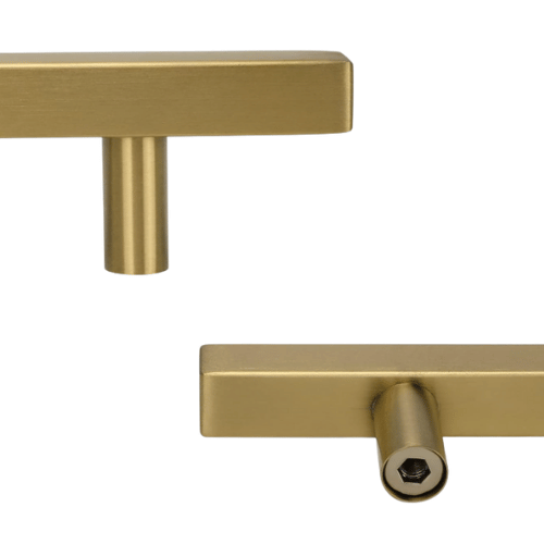 This handle is not only stylish but also highly functional. The ergonomic T-shaped design provides a comfortable grip, while its versatile size range allows you to choose the perfect fit for your furniture. Installation is straightforward: simply measure and drill the hole centers, insert the screw from the back, and tighten the handle securely.TAITA High Quality Stainless Steel Round leg Square handle Gold In just a few minutes, you can transform the appearance of your space with a refined finishing touch.