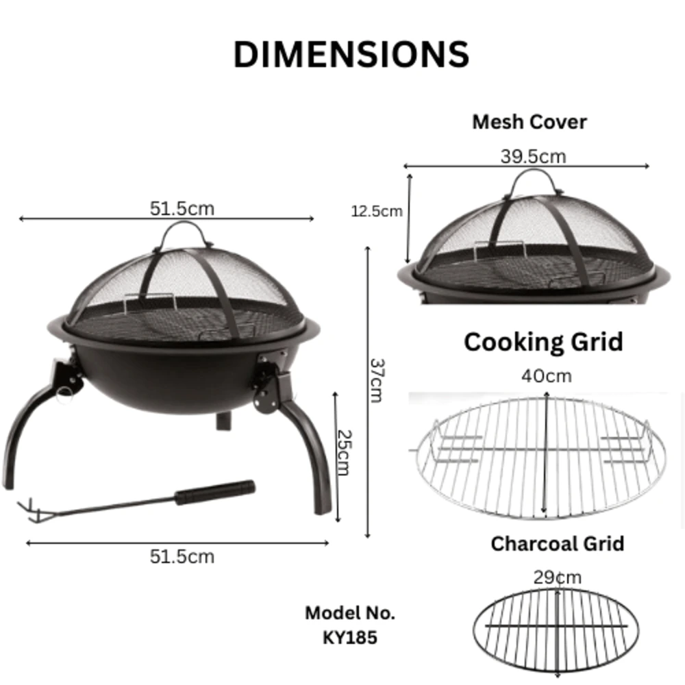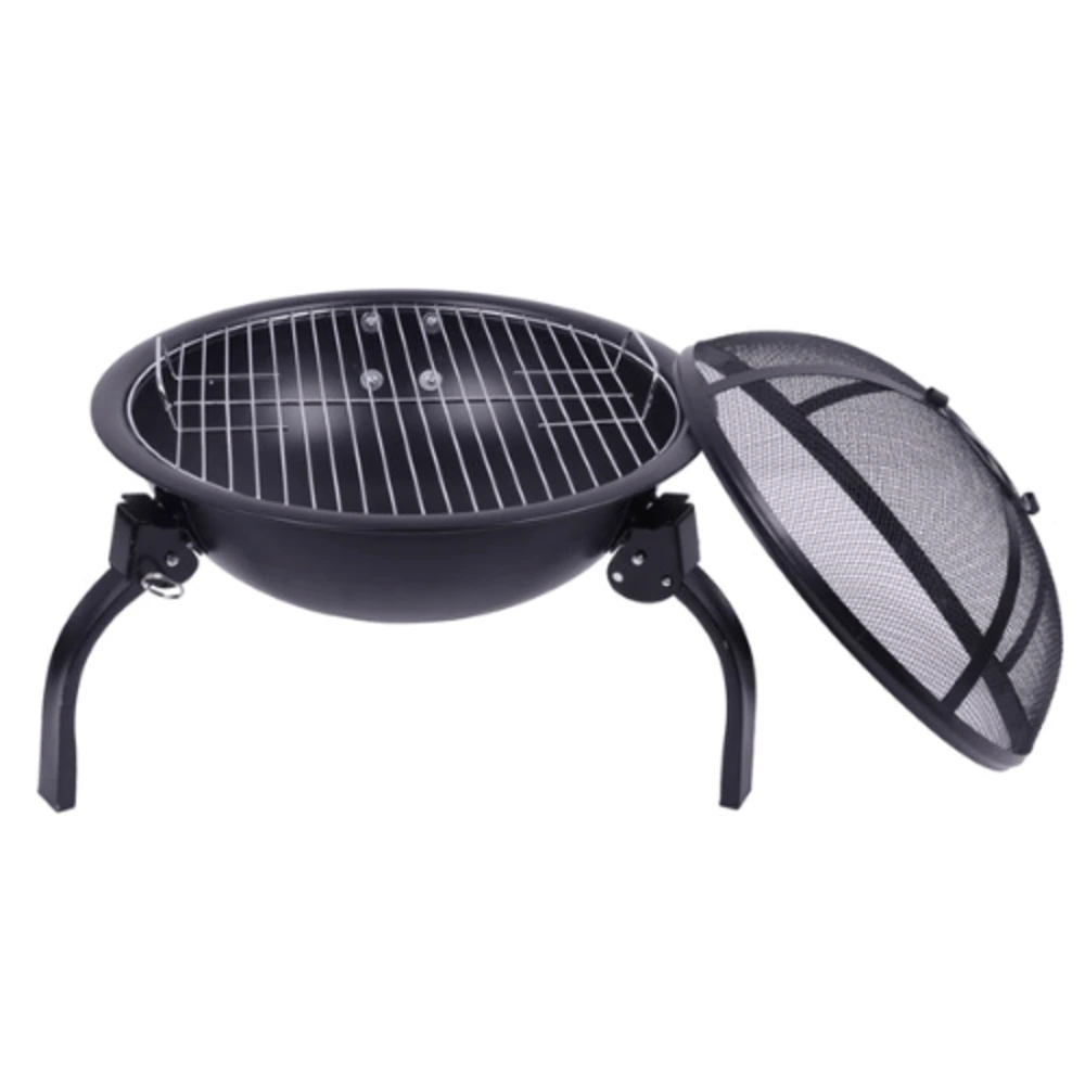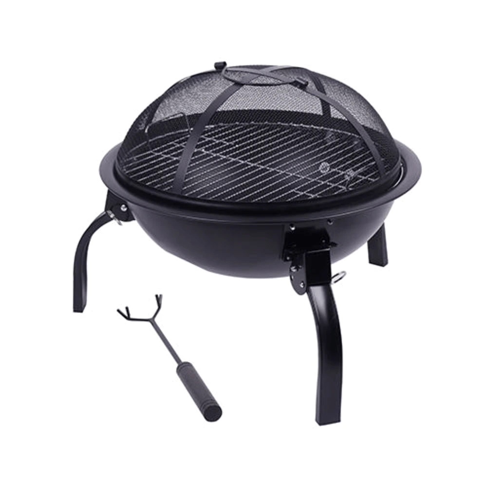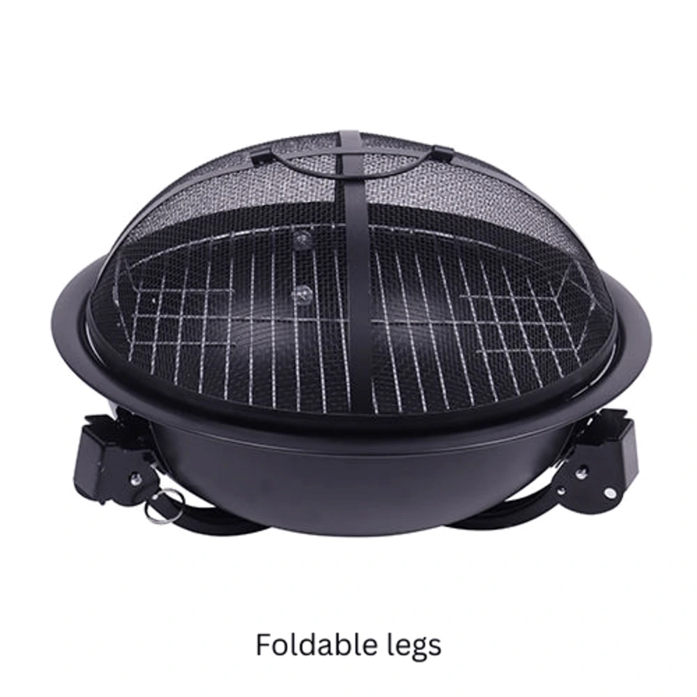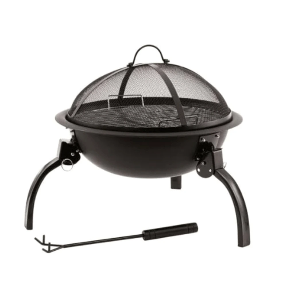 The durable steel construction ensures long-lasting performance, while the chrome-plated cooking grid allows you to grill food directly over the fire. Its foldable legs make assembly quick and convenient, allowing easy storage and transportation when not in use.