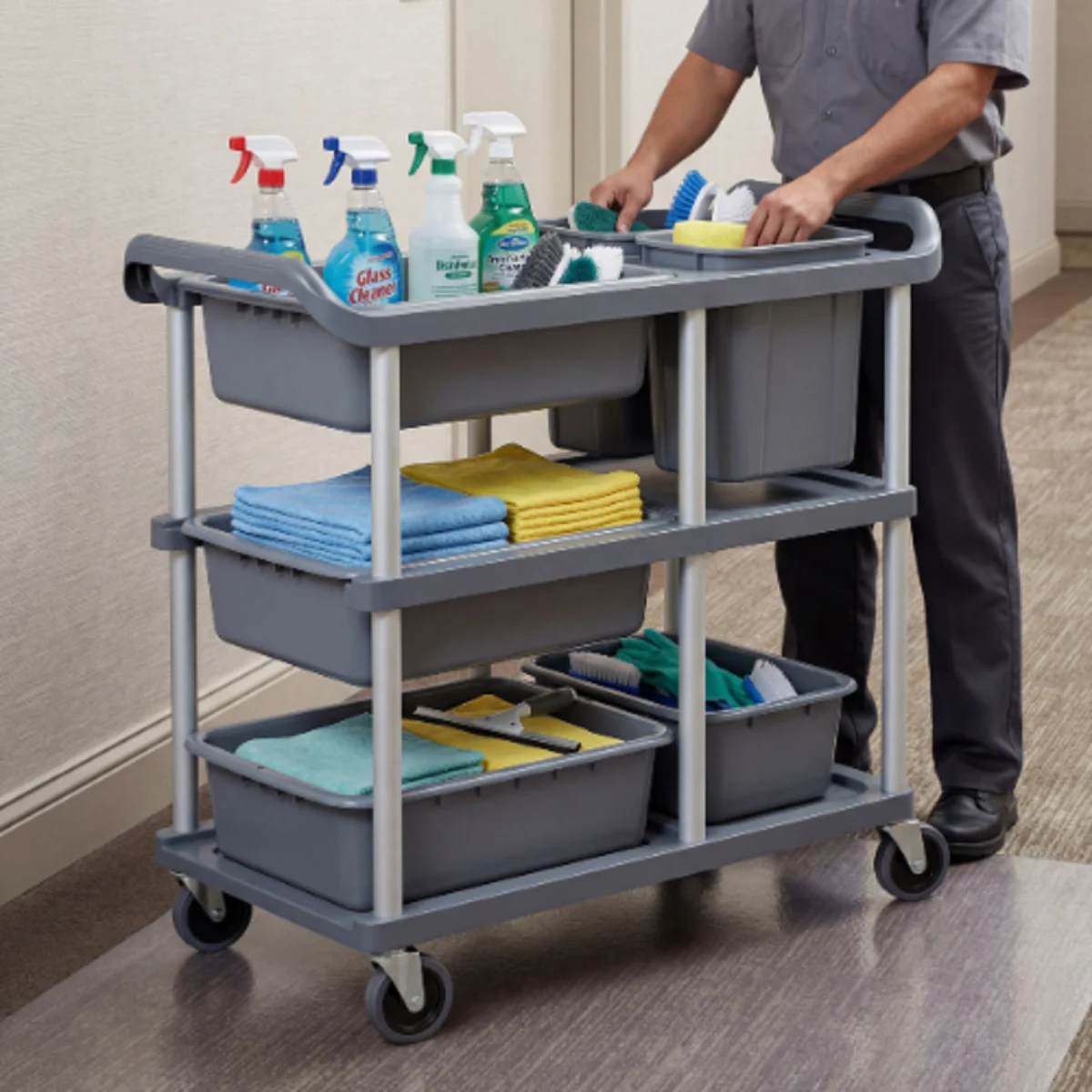 Featuring a modular design with multiple removable bins, it allows easy sorting, storage, and transport of items such as dishes, cutlery, ingredients, cleaning supplies, or waste. The structured layout enhances organization and workflow efficiency, making it especially suitable for restaurants, hotels, catering services, and housekeeping tasks.