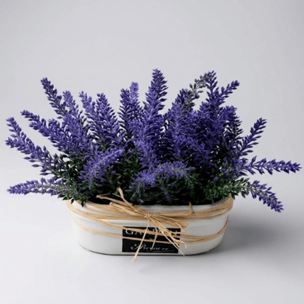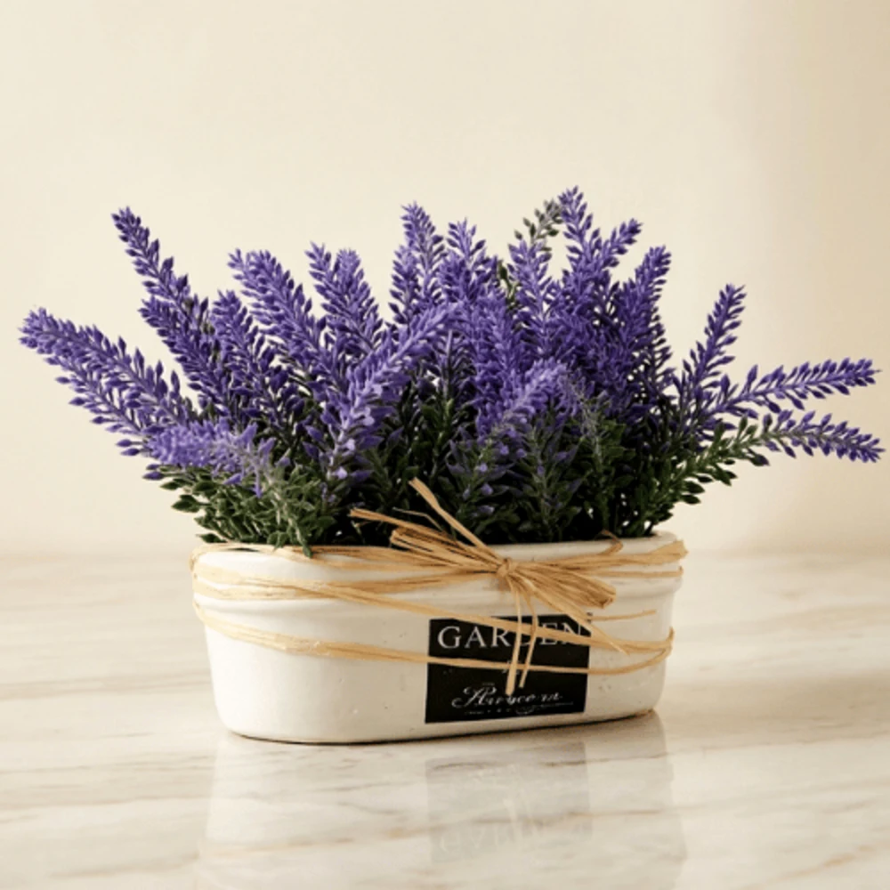 Crafted from premium plastic materials, the flowers are designed to maintain their vibrant color and structure over time. Artificial Lavender Potted Arrangement in a Classic Planter The classic ceramic planter enhances its aesthetic appeal, making it suitable for both traditional and modern interiors.