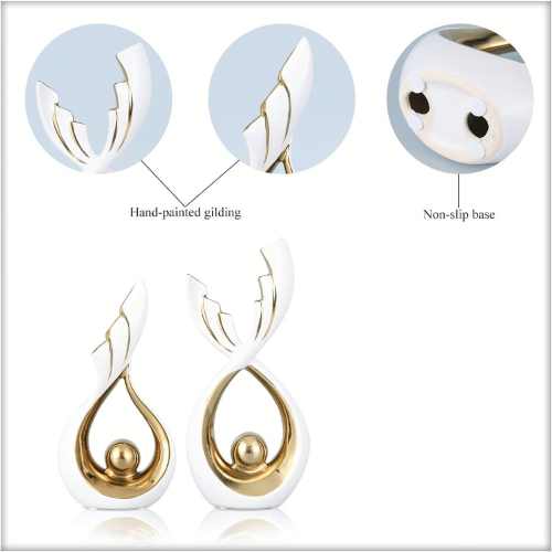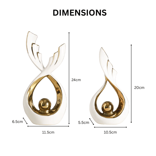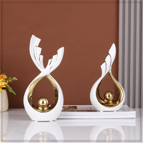 Unique Modern Art Angel Wings Ceramic Sculpture Set This set includes two beautifully sculpted figurines. Both pieces feature smooth contours, hand-gilded edges, and meticulously crafted details that capture the essence of mid-century modern art. Their abstract, flowing form adds a sophisticated artistic touch that elevates living rooms, bedrooms, dining areas, offices, and more.