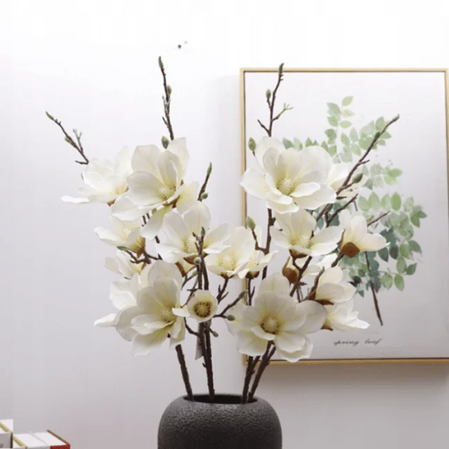 - 5 realistic magnolia flower heads per stem