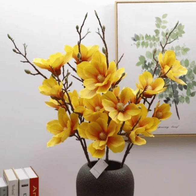 Ideal for home, office, hotel décor, weddings, parties, and photography styling, this magnolia stem stays vibrant year-round with no watering or special care required. Available in elegant white and warm yellow to suit different décor themes.