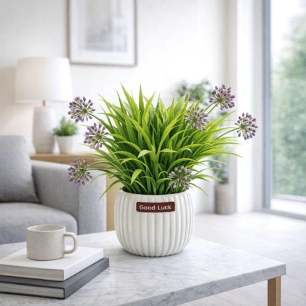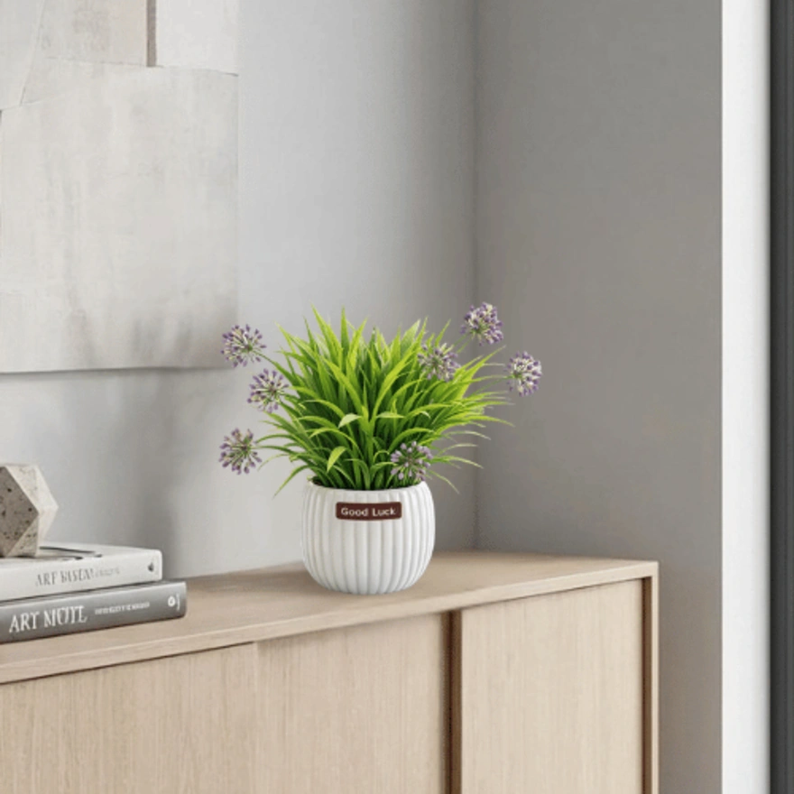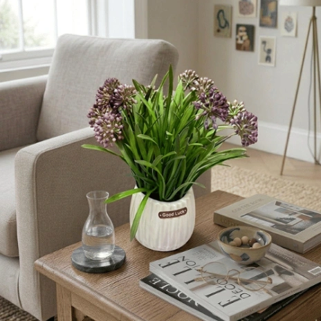 Perfect for desks, countertops, shelves, and entryways, this compact arrangement adds freshness without overwhelming the space.Artificial Allium Grass Pot Crafted from high-quality plastic, the foliage retains its vibrant color and structure over time without fading or shedding. The sturdy ceramic pot not only ensures stability but also enhances its decorative appeal.