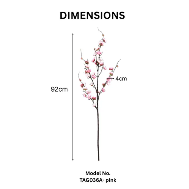 Standing at an impressive 92 cm tall, this long-stem blossom branch makes a stunning focal point in floor vases, table arrangements, or event décor. Artificial Cherry Blossom Branch The dense flower clusters and vibrant colors add a refined Japanese-inspired aesthetic to homes, weddings, hotels, and special celebrations.