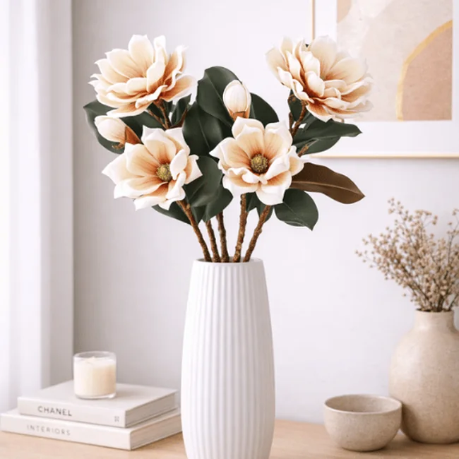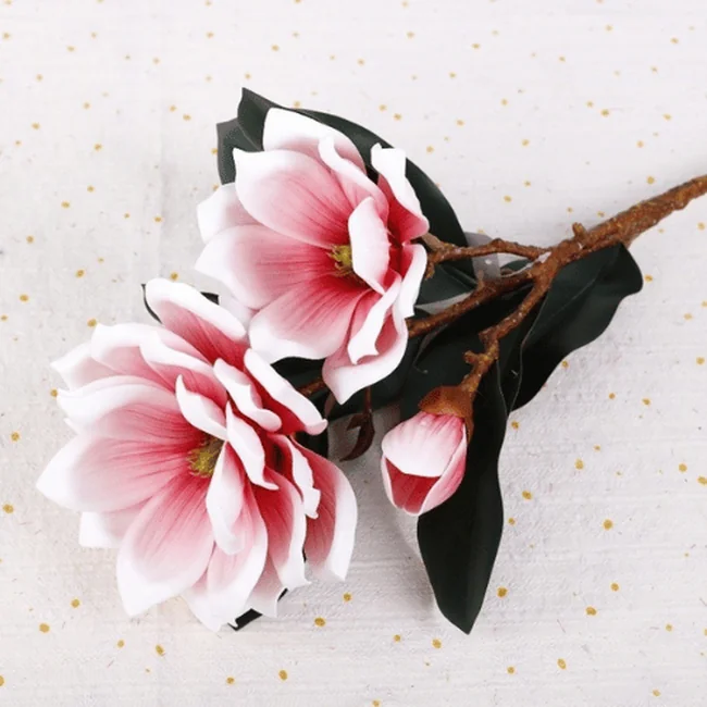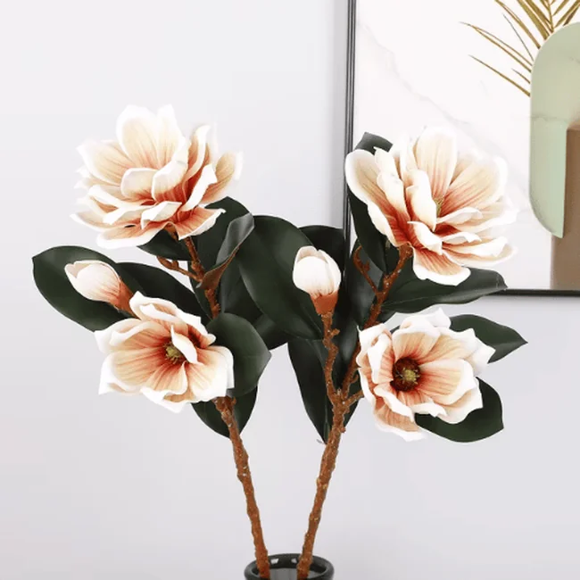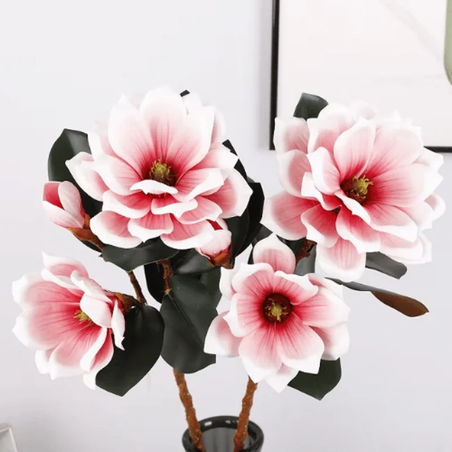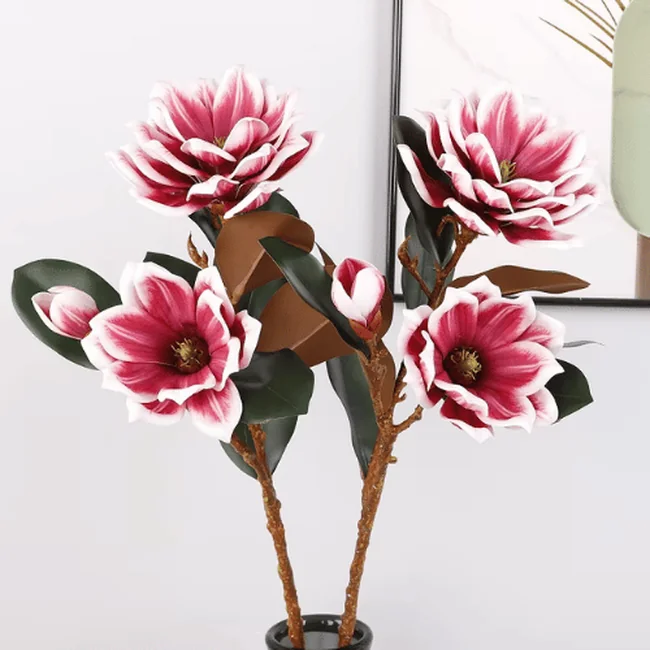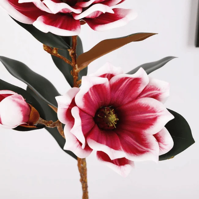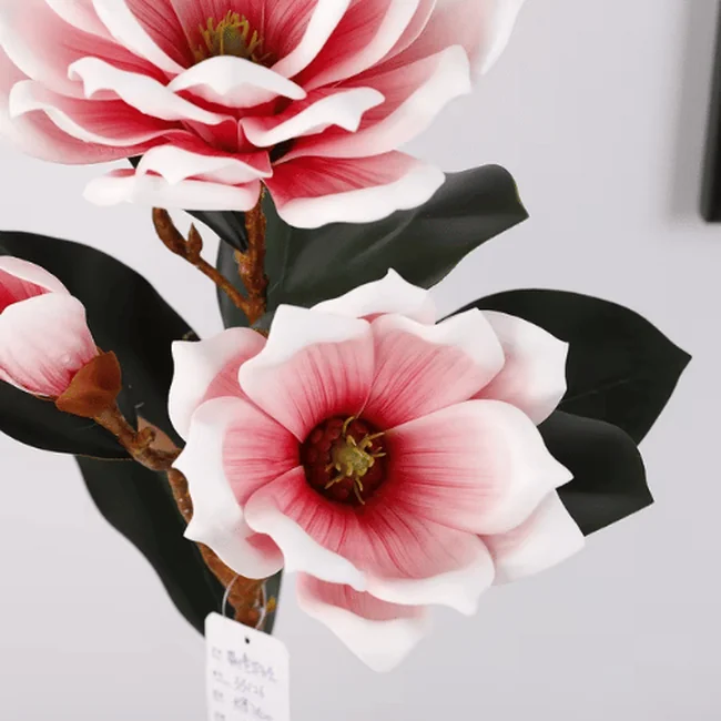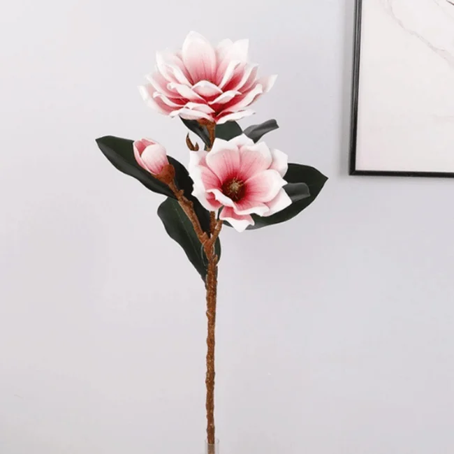 Each stem features a natural mix of fully opened blossoms and delicate buds, paired with lifelike veined leaves to enhance authenticity.Premium Real Touch Artificial Foam Magnolia Flower Stem Available in soft pink, bold red, classic white, and warm orange, this versatile magnolia stem complements modern, romantic, and seasonal décor themes.