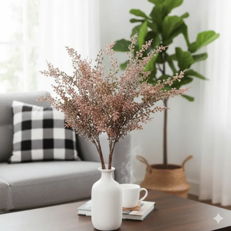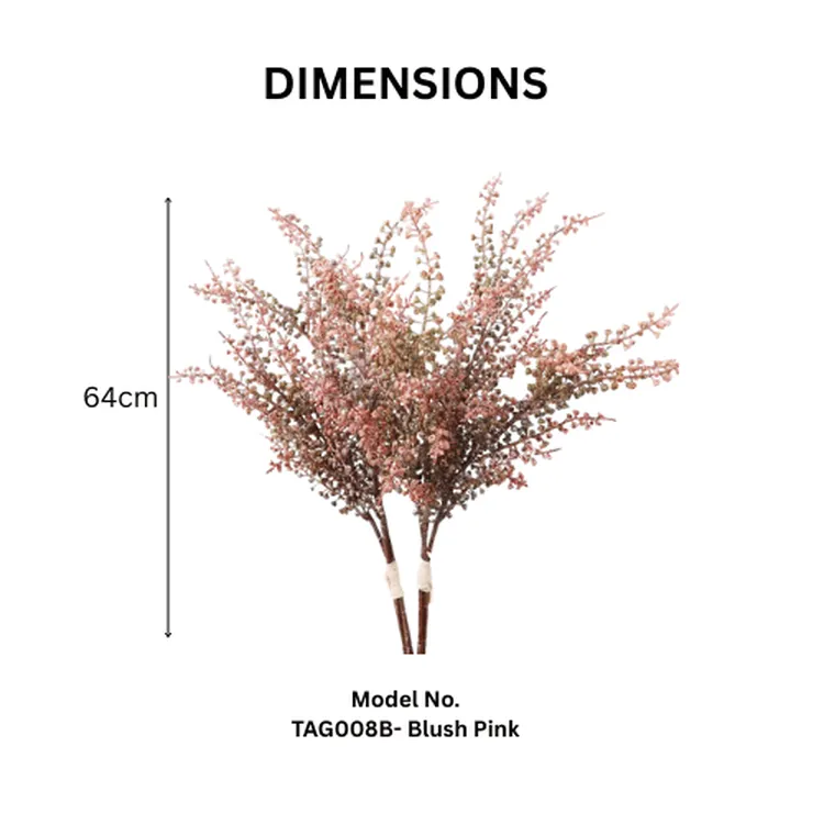 Standing at 64 cm tall, this versatile filler is ideal for softening focal flowers like peonies, roses, and hydrangeas, or for use alone in minimalist displays. Unlike natural dried botanicals, it requires no water and will not shed, maintaining its fresh look year-round.