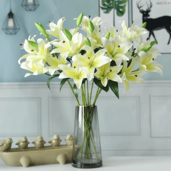 Crafted from durable plastic, the stem is lightweight, sturdy, and built for long-lasting decorative use. Artificial Lily Flower Stem yellow The sunny yellow tone adds warmth and positivity, making it perfect for home décor, festive styling, and event arrangements.