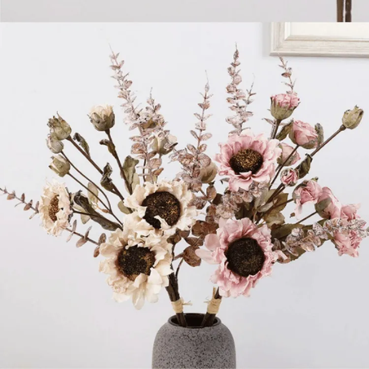 Elevate your interior styling with this Artificial Sunflower Bouquet in a soft muted blush tone. Expertly crafted from premium silk and durable plastic, the blooms feature a natural-looking texture that beautifully mimics real flowers while offering long-lasting durability. The unique muted blush colour adds a modern, elegant twist to the classic sunflower, making it perfect for contemporary, farmhouse, or romantic décor themes.
