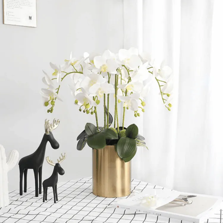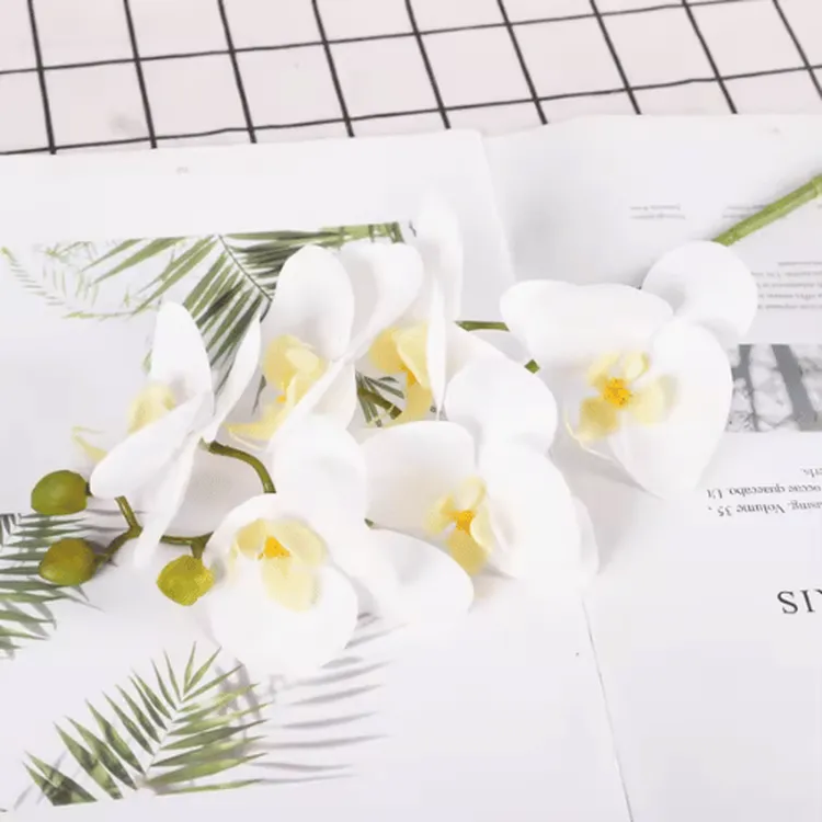 Brighten your décor with this 3D Printed Artificial Phalaenopsis Orchid Flower Stem in elegant white with yellow accents. Crafted with realistic 3D plastic film petals and a sturdy plastic stem reinforced with iron wire, this artificial orchid combines lifelike texture with durability. 3D Printed Artificial White & Yellow Orchid Flower Stem The flexible stem allows easy bending and shaping, making it perfect for custom floral arrangements.