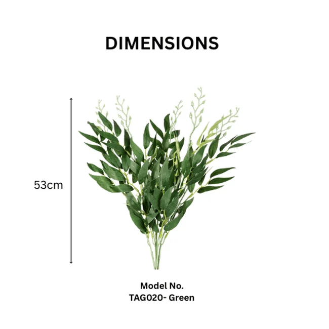 At 53 cm tall, this artificial willow spray works beautifully in tabletop vases, floral arrangements, wedding décor, holiday displays, or DIY projects. Artificial Willow Leaves Spray Its realistic appearance and maintenance-free design make it ideal for indoor and outdoor use, brightening your space without any watering or upkeep.