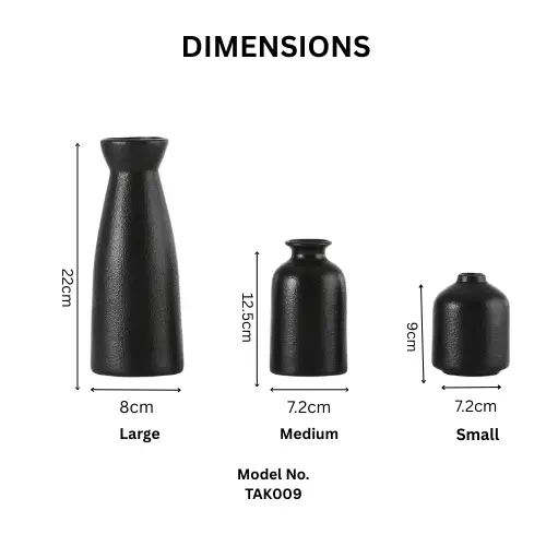 The set features a striking carbon stone black finish with a subtle sand-texture pattern paired with a clean cylindrical silhouette. This minimalist yet powerful design adds depth and contrast, making it ideal for dining rooms, living spaces, bedrooms, offices, kitchens, corridors, shelves, and consoles. Influenced by Scandinavian simplicity and Oriental refinement, the vases blend effortlessly into traditional, modern classic, and transitional interiors.