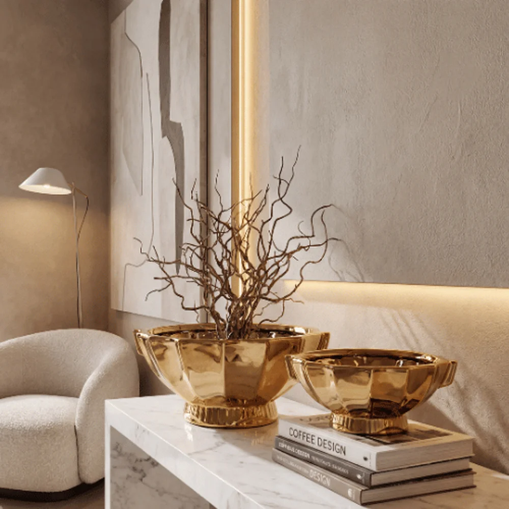 Introduce regal elegance to your space with the Aurelia Crown Ceramic Bowl, a statement piece inspired by traditional ceremonial forms and refined with modern craftsmanship. Featuring a radiant gold finish and distinctive fluted, crown-like silhouette, this bowl adds a majestic touch to both contemporary and traditional interiors.