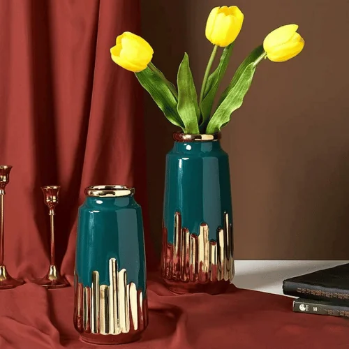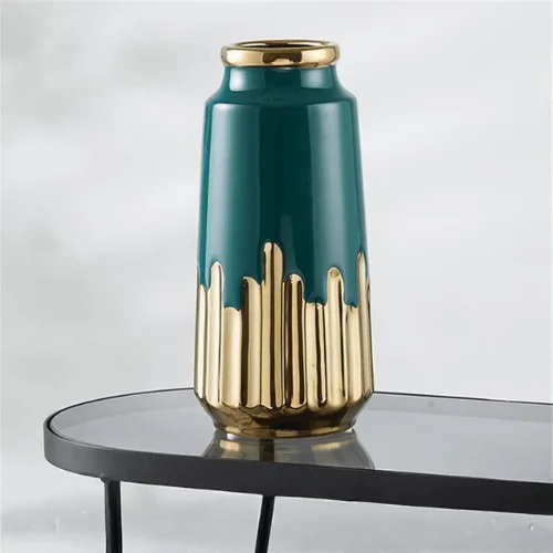Bring a touch of luxury and serenity to your home or office with the AURIX Jade Aura Table Vase. Featuring a rich green and gold combination, this premium ceramic vase blends timeless elegance with modern minimalism. Its sleek pot shape makes it a versatile piece—perfect for displaying fresh or dried flowers, greenery, or even as a standalone decorative accent.