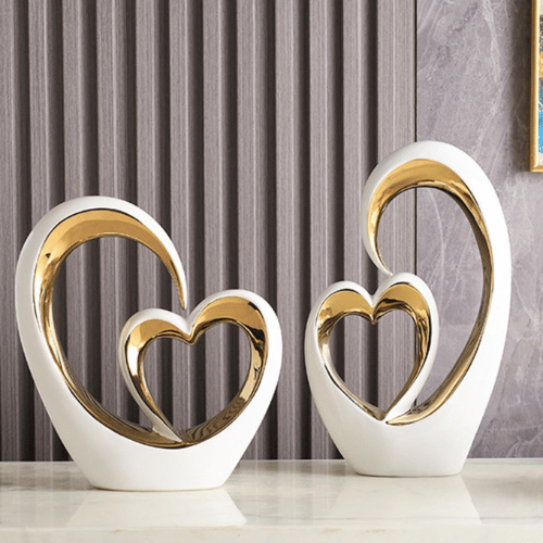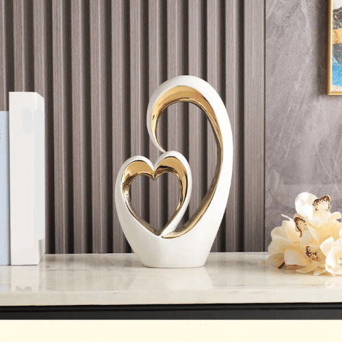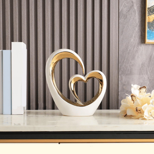The Modern Ceramic Heart and Oval Sculpture Ornament is a beautifully designed décor piece created to bring warmth, elegance, and a peaceful atmosphere to any room. Inspired by Scandinavian simplicity, this ornament features soft curves and a clean white finish complemented by subtle gold detailing. Its minimalist form blends seamlessly with modern, Western, or country-style interiors, making it an ideal addition to living rooms, bedrooms, entryways, office desks, and even garden shelf displays.