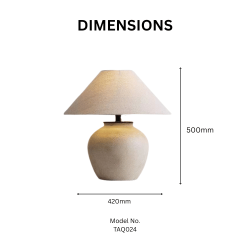 The ceramic lamp body features a simple yet rugged clay-pot silhouette, celebrating natural textures and artisanal craftsmanship. Each piece is carefully hand-finished, making every lamp subtly unique. Classic Ceramic Style Table Lamp Paired with a high-quality linen fabric lampshade, the design allows light to gently filter through, creating a warm, soothing glow that enhances relaxation and comfort without harsh glare.