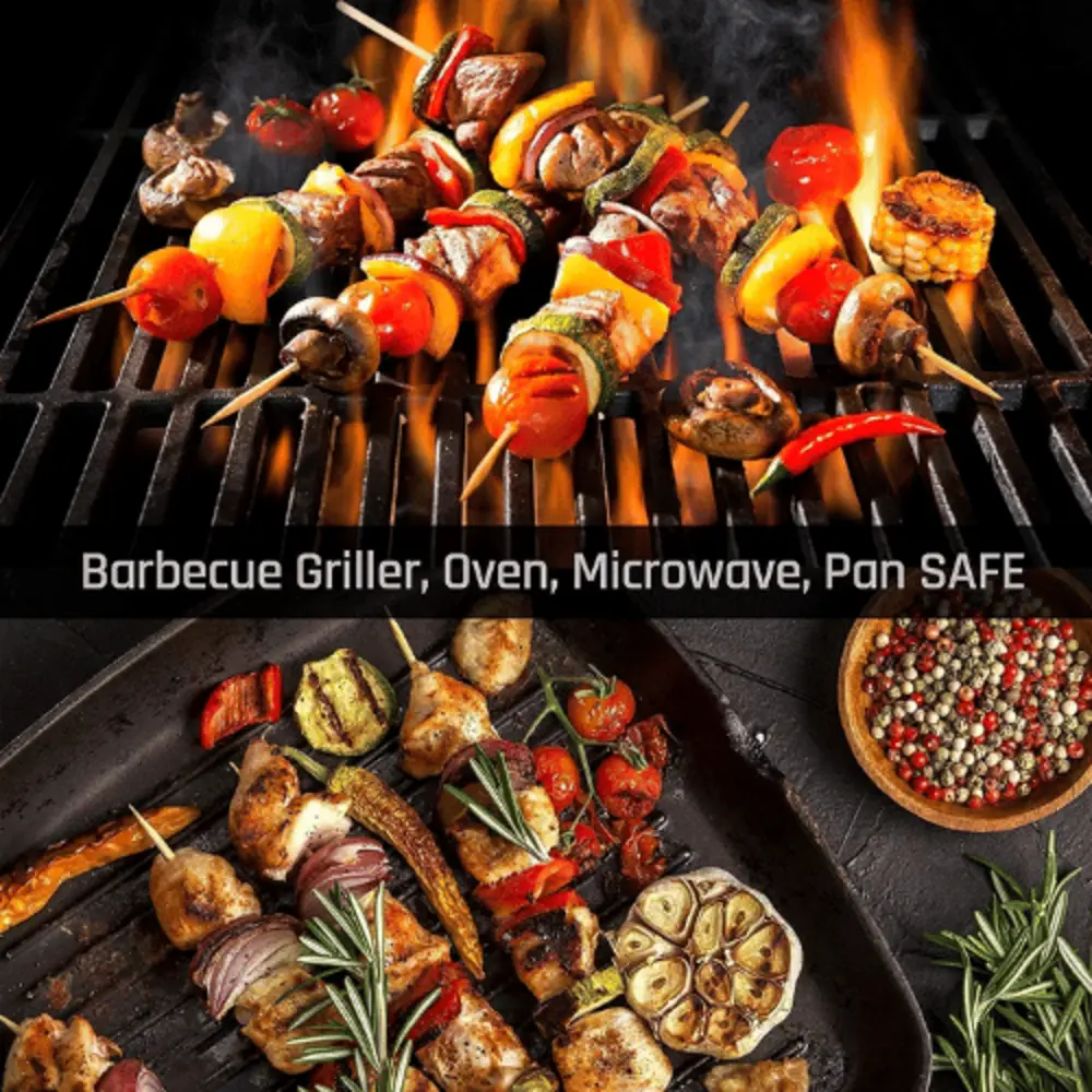 The stainless steel skewers provide excellent durability and are ideal for grilling meat, vegetables, seafood, and kebabs. Complete BBQ Grilling Tool Set The seasoning brush allows you to evenly apply sauces, marinades, and oils to enhance the flavor of your grilled food. Meanwhile, the cleaning brush ensures your grill stays hygienic and ready for the next cooking session.