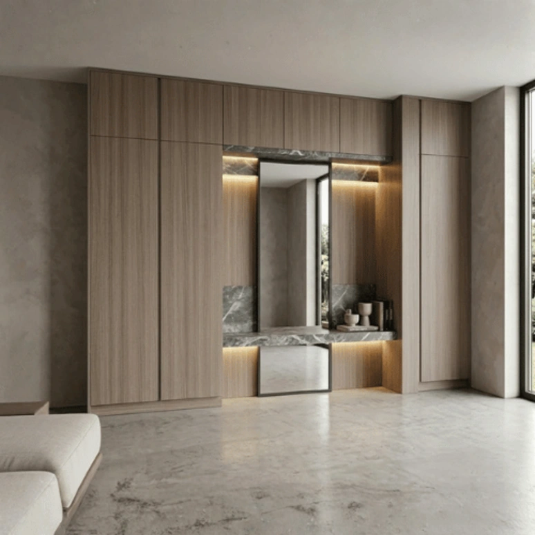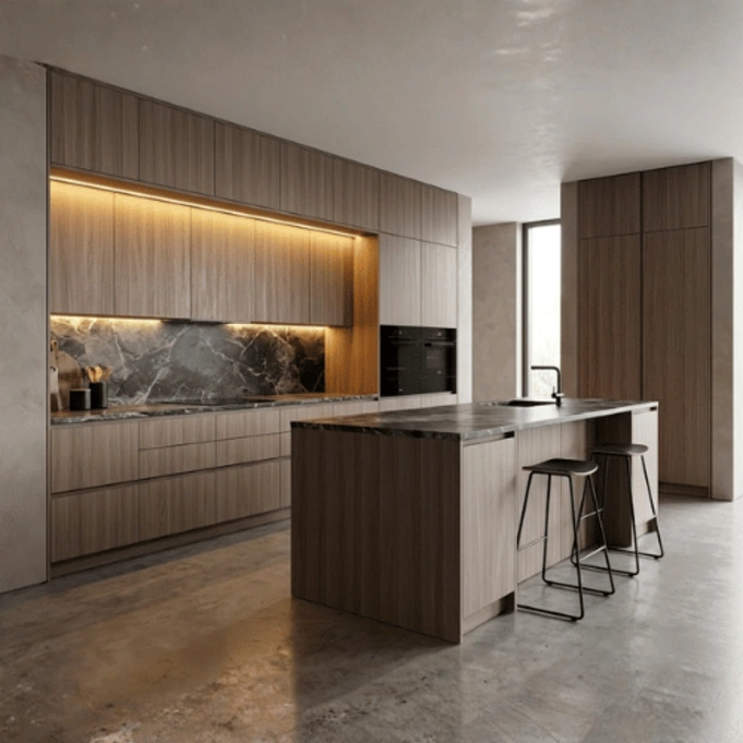 The dark wood tone adds a dramatic and elegant touch, making it ideal for feature walls, wardrobes, cabinetry, and luxury furniture. It pairs beautifully with lighter tones, metallic accents, and modern design elements.