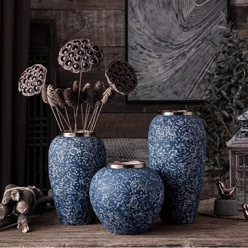 Add artistic elegance and functional beauty to your space with the Deep Aura Table Vase 3pc Set. Designed with a striking navy blue and white floral print, this collection blends timeless charm with modern décor appeal, making it a perfect accent for living rooms, bedrooms, dining areas, offices, foyers, and bedside tables.