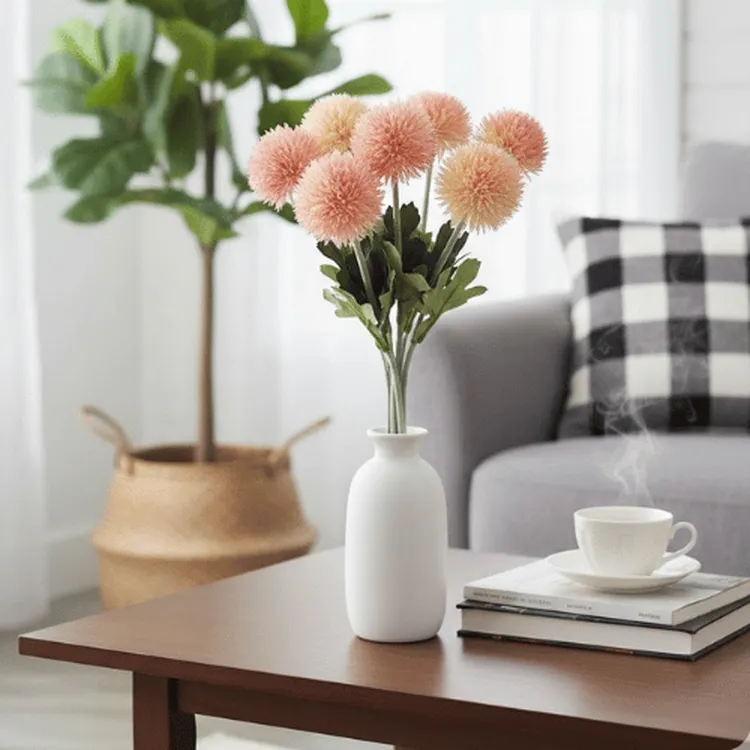 Bring a gentle romantic touch to your décor with this Artificial Dianthus Bouquet Soft Pink Pompon Floral Bunch . Featuring charming pompon-style blooms (resembling chrysanthemum or dandelion forms), this compact bouquet adds fullness and delicate texture to any floral display without the upkeep of fresh flowers.