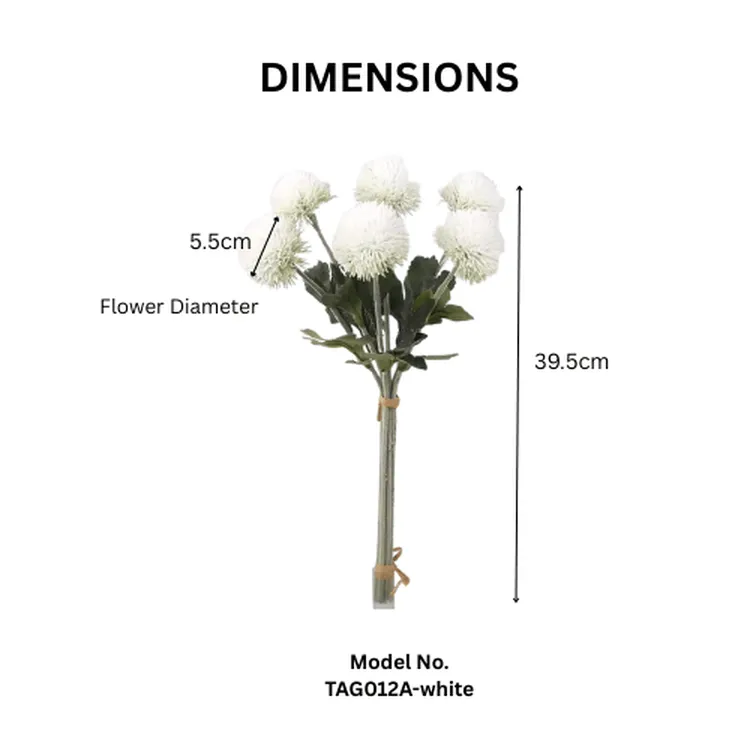 Add soft floral charm to your décor with this Artificial Dianthus Bouquet in elegant white. Artificial Dianthus Bouquet White Pompon Floral Bunch Styled with pompon-like blooms (similar to chrysanthemum or dandelion forms), this compact bouquet brings a fresh, delicate look to any space without the upkeep of real flowers.