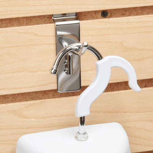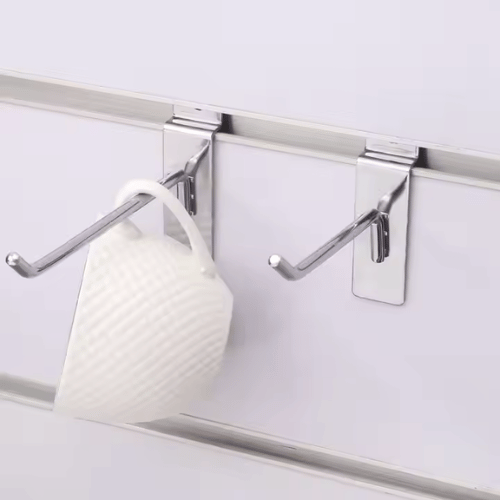 Engineered for commercial-grade performance, these hooks are sturdy enough to hold various items including tools, accessories, packaged goods, clothing, and household essentials. Their slatwall-compatible design ensures quick installation, easy repositioning, and reliable support. Simply angle the hook into the mounted slatwall panel, lay it flat, and it’s ready to use—no tools required.