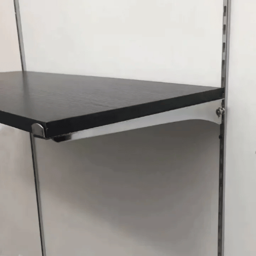 Designed for versatility and practicality, the Solid Display M120 Bracket features a slotted adjustable structure, allowing you to easily modify the shelf position according to your storage or display needs. Whether used in retail stores, offices, homes, or showrooms, it delivers a professional finish and reliable functionality. The corrosion-resistant chrome finish ensures that the bracket maintains its shine and strength even with regular use.