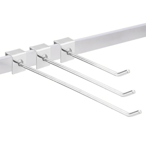Perfect for hanging clothing, accessories, packaged items, tools, or promotional products, these hooks help maximize wall and rack space while maintaining an organized and attractive presentation. Whether you need compact hooks for small items or longer hooks for bulkier merchandise, this series offers ample versatility with three available lengths: 4″, 6″, and 8″.