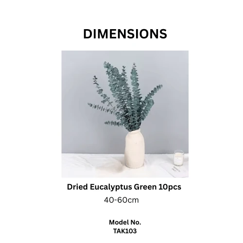 Bring refreshing, natural elegance into your space with Dried Eucalyptus Natural Green. Made from 100% real eucalyptus stems, each branch is hand-picked and naturally dried to preserve its original beauty, texture, and soft organic character. Unlike artificial greenery, these stems showcase authentic variations in leaf shape, size, and posture, creating a truly natural look.
