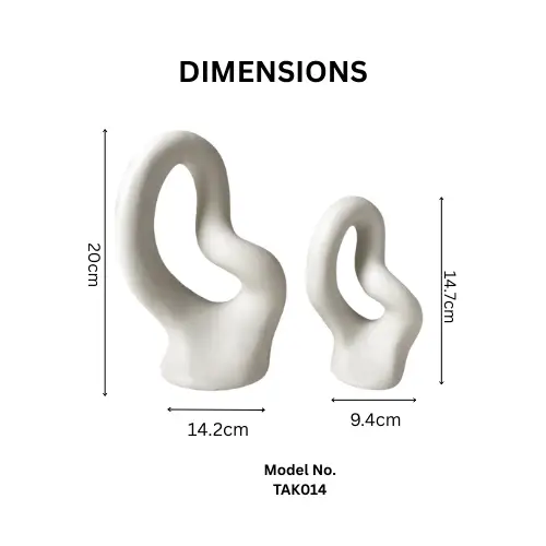 The clean white finish and geometric design allow these vases to seamlessly complement modern, classic, and transitional interiors. Perfectly sized for tabletops, shelves, consoles, or dining tables, the set includes a small vase (9.4 × 14.7 cm) and a medium vase (14.2 × 20 cm), allowing for versatile styling and layered displays.