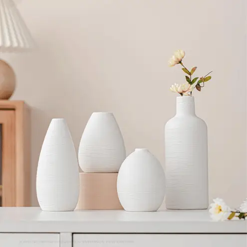 Enhance your space with the graceful beauty of the Fluid Harmony White Table Vase Set, a refined 4-piece ceramic collection designed to complement both modern and classic interiors. Each vase is crafted from 100% premium ceramic and fired at high temperatures to ensure long-lasting strength, stability, and a flawless smooth finish. Carefully handmade, these vases bring an elegant, artistic touch to any room.