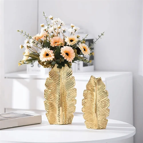 - Set of 2 premium ceramic vases in elegant royal gold finish