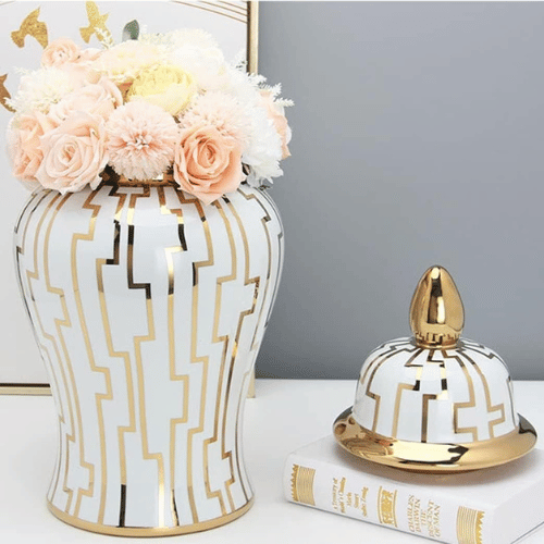 - Product Name: Luxury Geometric Ceramic Decorative Ginger Pot