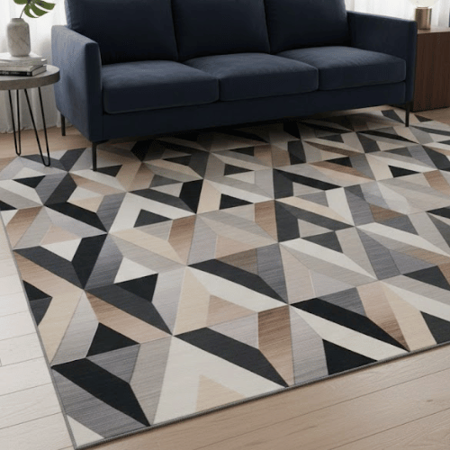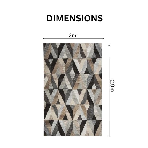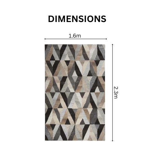 Elevate your home with the Luxurious Modern Geometric Mirrored Diamond Rug Carpet, crafted to bring elegance, purity, and modern artistry into any living space. Available in two sizes—CARJ001m (1.6 × 2.3 m) and CARJ001n (2 × 2.9 m)—this rug showcases a breathtaking geometric mirrored-diamond pattern in refined tones of grey, natural, black, and beige. The combination of neutral hues creates a striking contemporary look that pairs perfectly with modern and transitional interiors.