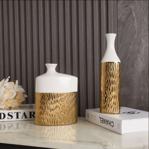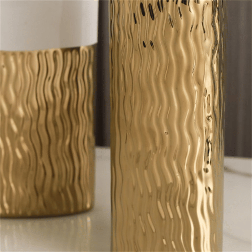 The Luxury Home Decor Gold Hollow Ceramic Flower Vase brings artistic elegance and modern luxury into any living space. Crafted from high-temperature fired ceramic, each vase delivers exceptional durability with a smooth, polished finish that feels gentle and safe to the touch. The rounded mouth is meticulously refined, ensuring comfort during handling and flower arrangement. Designed with an eye-catching hollow structure and enhanced with European-style geometric carving, these vases combine practicality with artistic beauty, serving as both functional vessels and striking décor pieces.