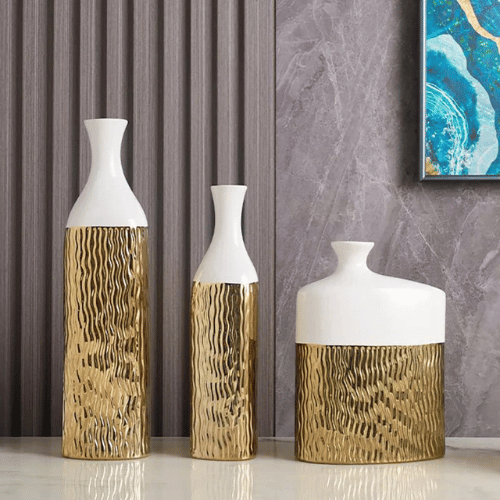 The glossy white exterior paired with luxurious gold detailing creates a sophisticated Art Deco aesthetic. Luxury Home Decor Gold Hollow Ceramic Flower Vase Their irregular shapes and creative patterns add depth and visual appeal, transforming any room into a stylish, contemporary haven. These vases effortlessly enhance the atmosphere—adding warmth, color, and a visually compelling focal point to your home.