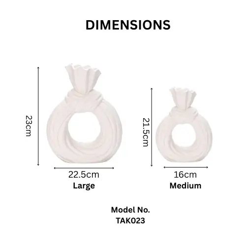 Designed for versatility, the Infinity Knot vases pair beautifully with pampas grass, palm leaves, eucalyptus, cherry blossoms, dried stems, or floral bouquets. Use them individually or together to create layered, eye-catching arrangements for living rooms, bedrooms, kitchens, offices, and event spaces.