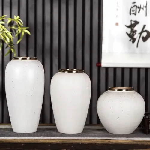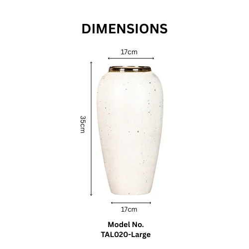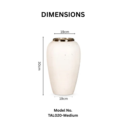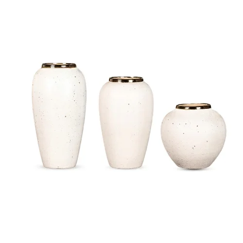 Each vase is handcrafted from premium ceramic, ensuring durability while delivering a smooth, sophisticated finish. The classic white tone enhanced with subtle gold accents creates a calm, upscale presence that complements modern, contemporary, and classic décor styles. Whether styled with fresh flowers, dried botanicals, or displayed as standalone sculptural pieces, the Ivory Whisper set instantly enhances any surface.