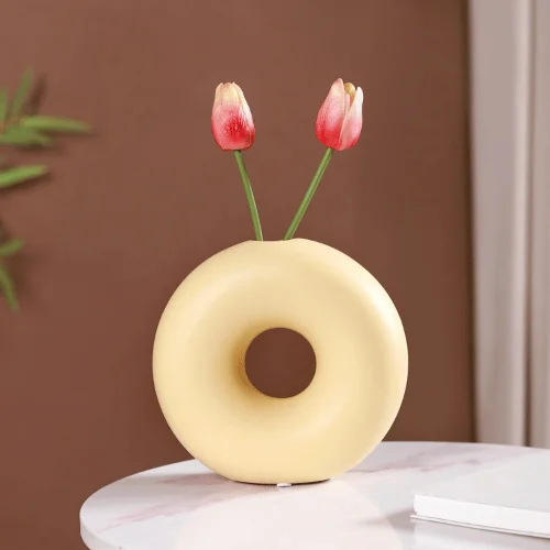 Donut / Hollow Form: Unique hollow design adds visual interest, allowing the vase to shine both as a standalone décor piece and with flowers.