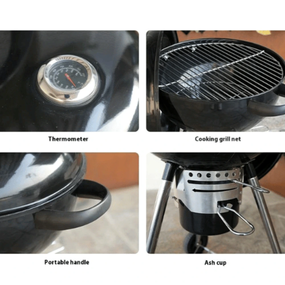 With a comfortable cooking height of 80 cm, this grill provides a practical working level that helps reduce strain during extended grilling sessions. Large Kettle Charcoal BBQ Grill with Lid The integrated lid helps retain heat and maintain consistent cooking temperatures while protecting food from wind and outdoor elements.