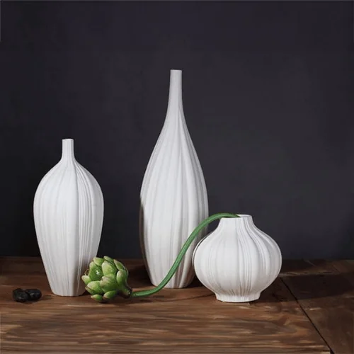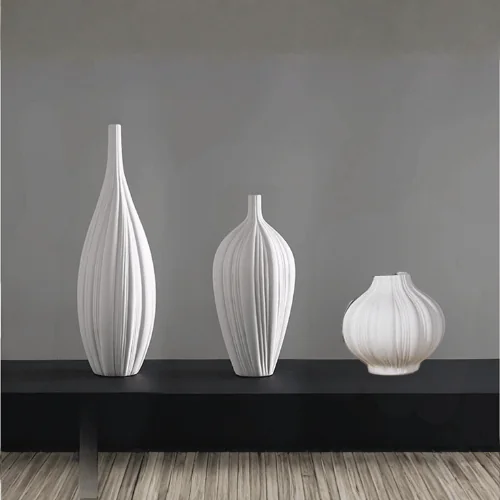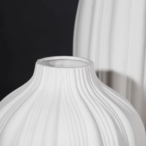 Refined, sculptural, and timeless, the LUXORA Golden Crest Table Vase Set brings artistic elegance into your interior styling. This 3-piece white ceramic vase collection is inspired by a garlic-shaped silhouette enhanced with a textured swirling surface, creating a soft yet striking visual appeal for modern and classic homes alike.