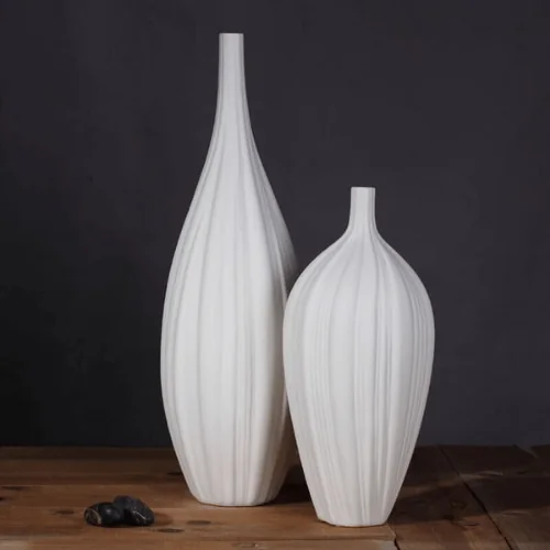 Each vase features a balanced, rounded base that gently rises into a narrow neck, giving the set a graceful architectural form. The clean matte white finish pairs beautifully with any décor palette, making these vases versatile accents for both minimal and luxurious spaces. Display them together as a coordinated trio or separately to add harmony across your rooms.