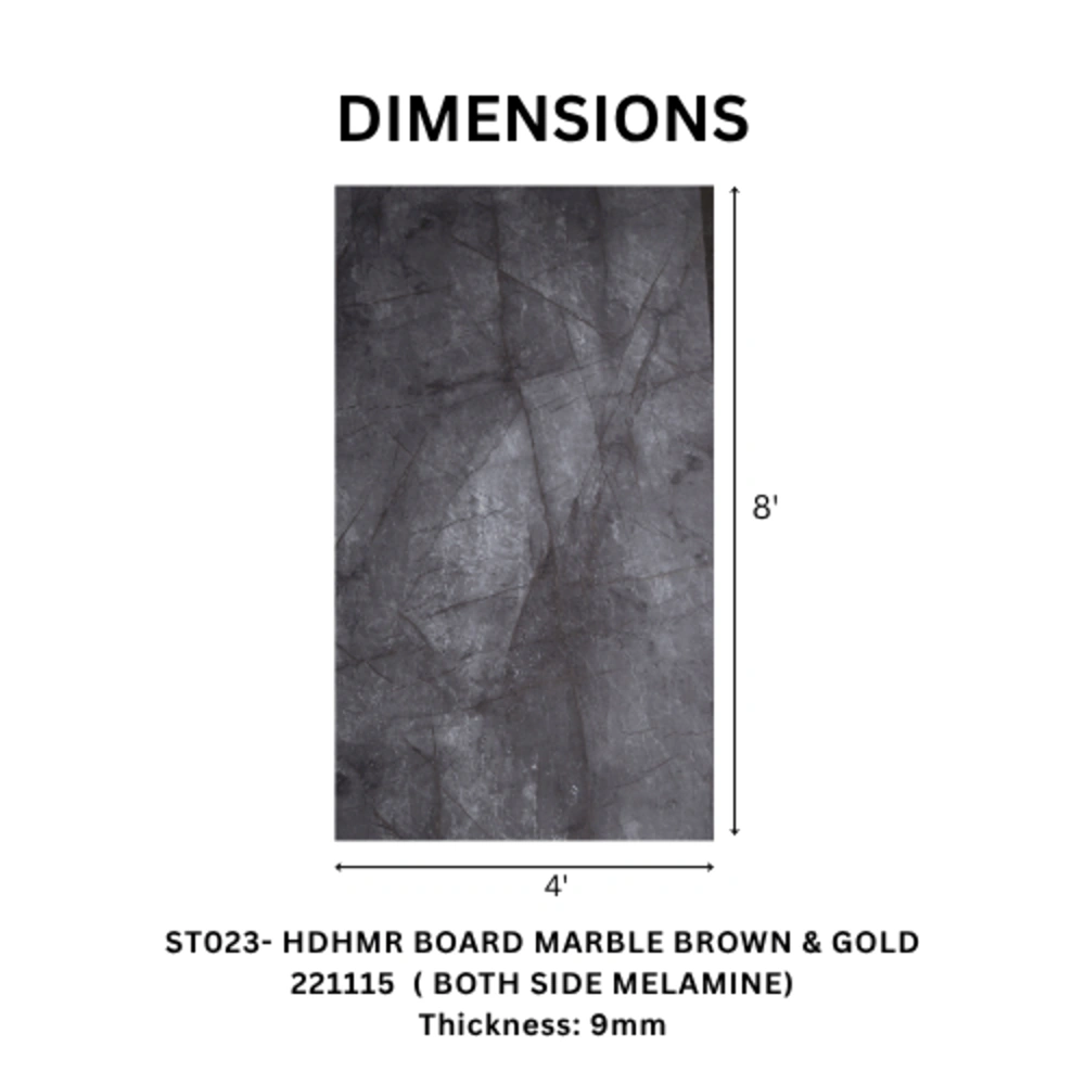 The TAITA Premium Luxury Marble Brown & Gold Melamine HDHMR Board is a premium decorative panel designed to replicate the richness of natural marble with elegant gold accents. This 18MM,9mm & 4mm board brings a high-end aesthetic to interiors, making it ideal for luxury residential and commercial spaces.