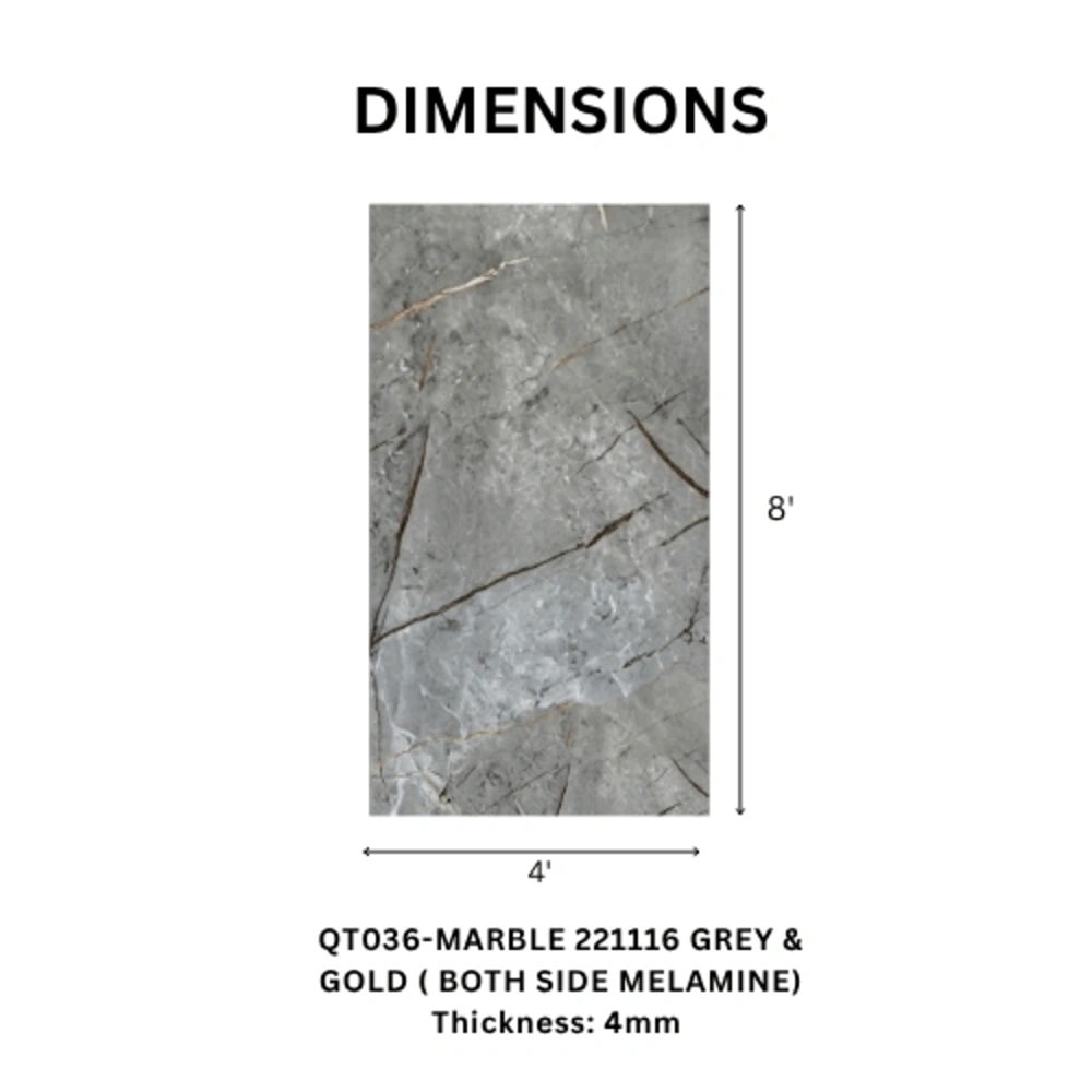 TAITA Premium Luxury Marble Grey & Gold Melamine HDHMR Board