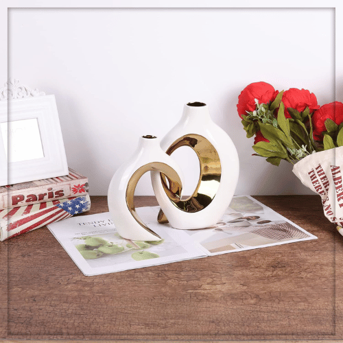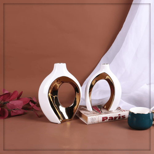 Elevate your interior styling with the Modern Minimalist Hollow Ceramic Vase Set TAJ007 , a beautifully crafted duo designed for homes that embrace simplicity, texture, and artistic expression. Made from premium ceramic, each vase features a smooth matte surface paired with a stunning metallic accent in White Gold. The unique hollow round shape adds depth and dimension, making it a striking statement piece for any room.