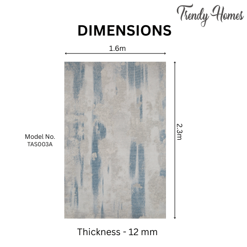 Designed for everyday living, the rug is stain-resistant, non-shedding, and easy to clean, making it suitable for high-traffic areas such as living rooms, dining spaces, bedrooms, and offices. An anti-slip backing enhances safety and stability on various floor types. Available in two versatile sizes, the TAS003 rug effortlessly anchors both medium and large spaces with artistic elegance.
