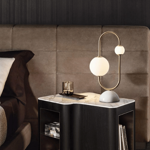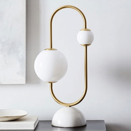 The spherical glass lampshade gently disperses light evenly, reducing glare and providing comfortable illumination for reading, relaxing, or ambient lighting. Paired with a solid marble base and metal structure, the lamp offers excellent stability, durability, and a premium tactile finish. The contrast between the clean white glass, natural marble, and sleek metal gives the lamp a retro yet contemporary look that feels both timeless and fashionable.