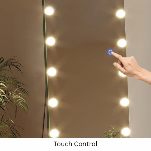 Equipped with advanced lighting Touch control, the mirror includes 20 evenly spaced LED bulbs that illuminate your entire body. Luxury Modern Standing Vanity Mirror Gold With adjustable brightness and multiple light modes, Lighting Touch Control: Adjustable LED Brightness & Modes Light colour changing -White ,Warm ,White & Warm mixed.